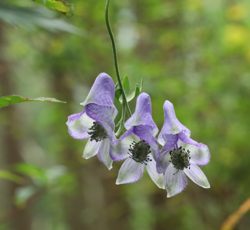 ・特徴 :トリカブトの仲間で、 半ツル性の疑似1年草(今年の株の母根が1年で枯れ、母根の先に生じた子根が翌年に母根となる疑似1年草で、地上部の草体は多年草と同様に更新する。)である。茎が他のトリカブトの仲間と比べて細く、茎の上部はツル状