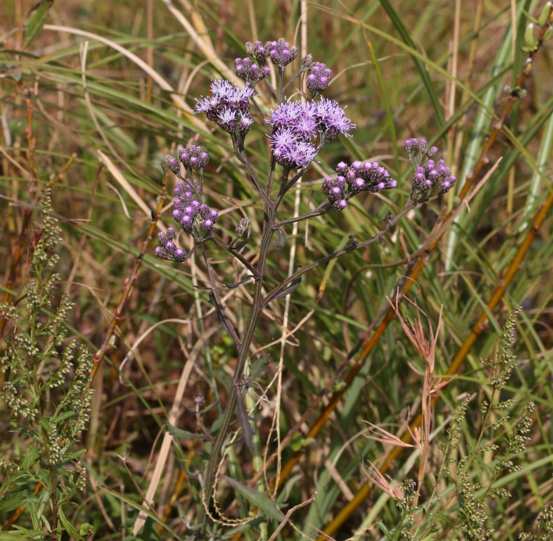 草丈約60cmほどの小さな個体。茎上部の切れ込みのない全縁の葉がよくわかる。一つの円錐状の頭花の集団に魅せられる。