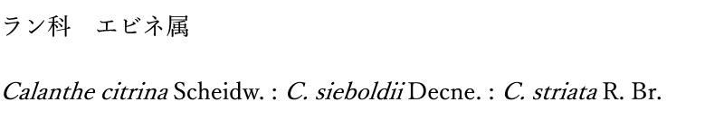 ・名前の由来:キ(黄)は花が黄色であることから、エビネ(海老根)は草体や花の形状がエビネに似ていることによる。