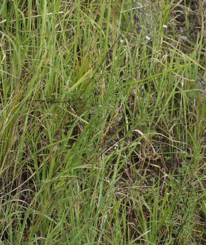 マツバニンジンの花はナデシコのように大きくはないが、暑い夏の日当たりの良い乾き気味の場所に咲く薄いピンクの花はとても可憐である。