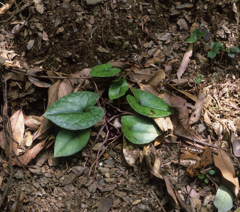 雑感:ウマノスズクサ科の植物は、いずれも面白くて興味深い花ばかりを咲かすが、この花を見ようと現地に期待して行って、生育地で初めて見たとき、この特異な自然の創作物の奇妙さを感じ大いに驚かされた。