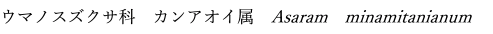 ・特徴 : カンアオイ属の大多数の種と根茎や葉はよく似ているが、花の構造がとくに区別の対象となる。