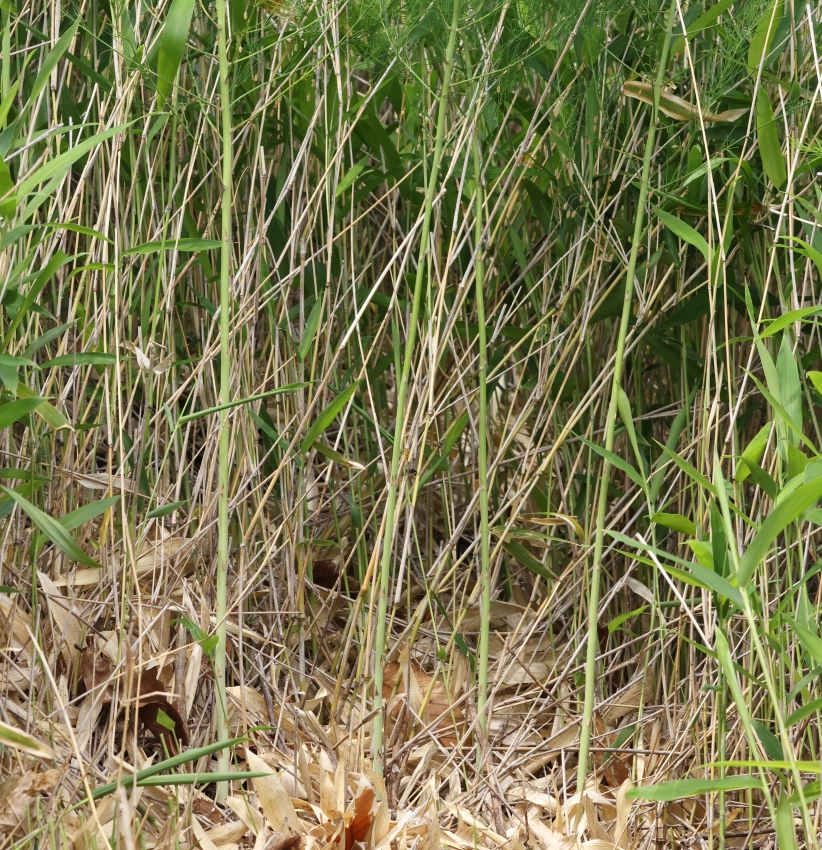 ササ原の中を通るけもの道に面して生えている個体で、地上茎の下部から先端までの草姿がわかる。4個の地上茎があるが、4個すべて地下茎でつながった1個の株とおもわれる。