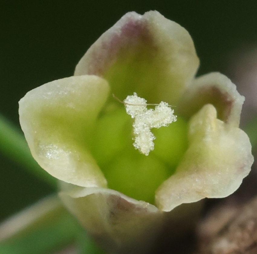 雌花の近接画像、柱頭は3個に分かれている。ちなみに雄花の雄しべは6個である。