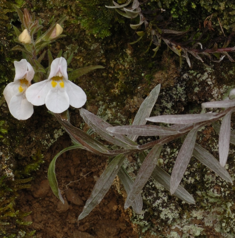 ・特徴 :半寄生の2年草。根ぎわで分枝して株となり、茎は斜上して高さ15~25cm、葉には白い綿毛を密生する。茎の上部の葉は線状長楕円形または倒披針形で先はとがり、長さ5~25㎜、幅1.5~4㎜で対生する。