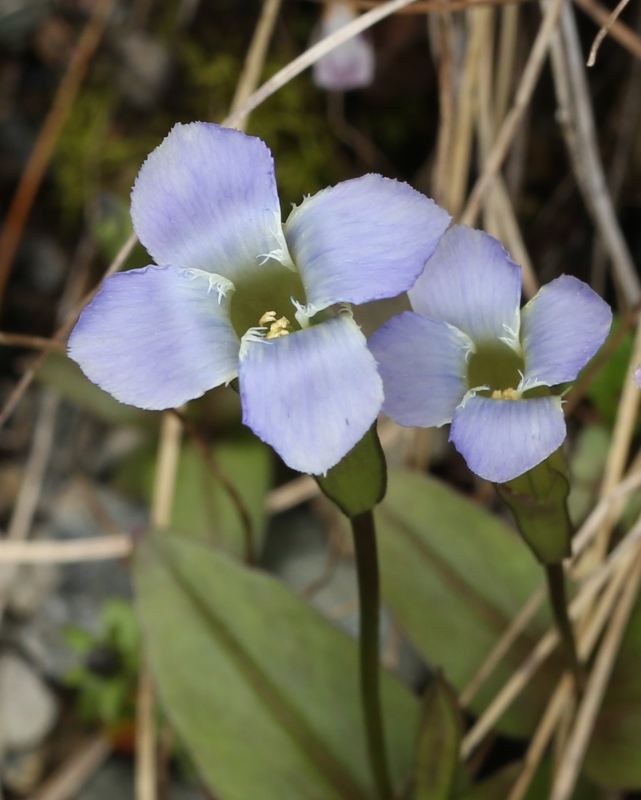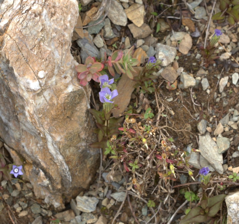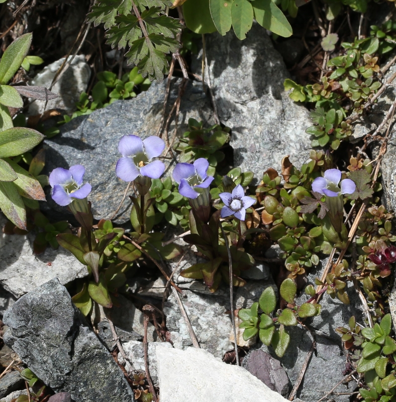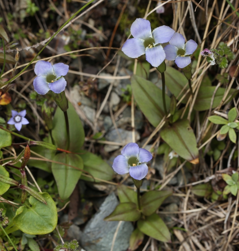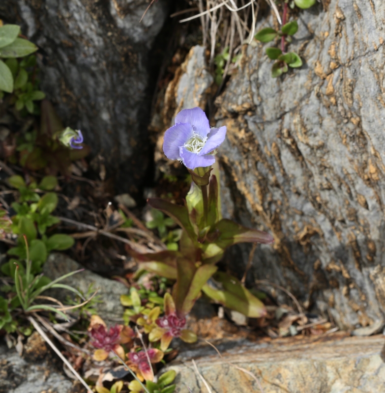 雑感:チチブリンドウ属の北アルプスのシロウマリンドウと南アルプスのアカイシリンドウは対をなしていて、山好きとしてはうれしい。花冠裂片が5個ある5数性のリンドウ属の花を見慣れてるので、裂片が4個の4数性の