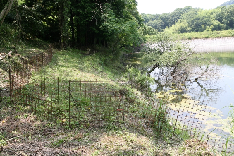 自生していた。土手が少し湿り気があるためかイノシシが掘り返すため、防護柵を施している。
