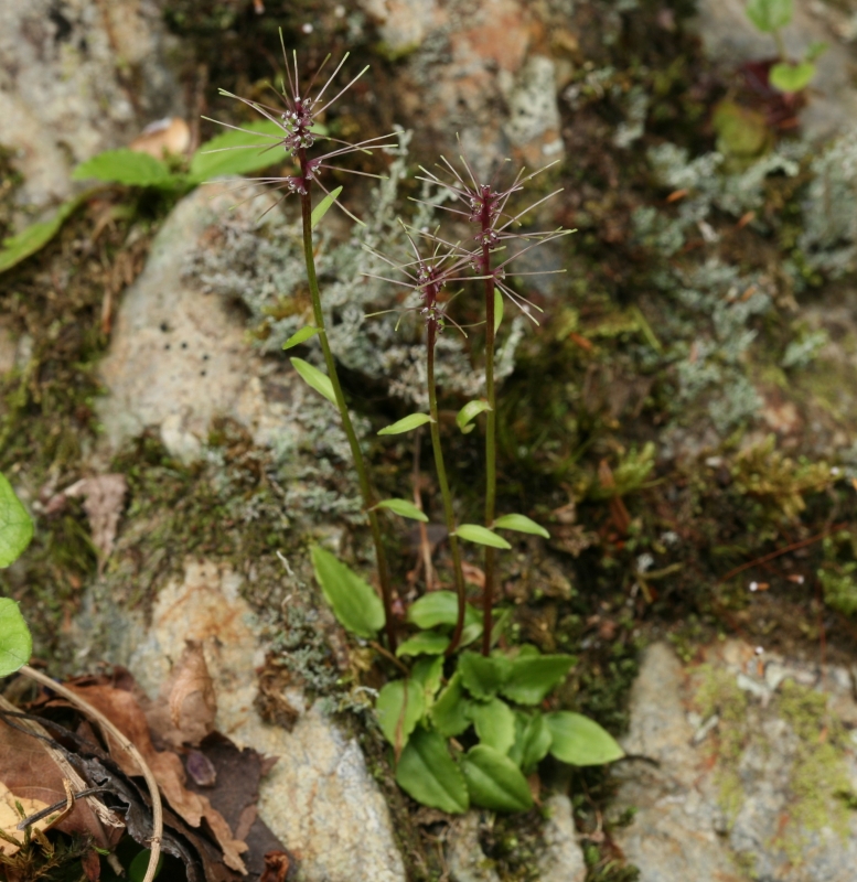 ・生育地:湿気の多い林中や沢沿いの岩壁に自生する。