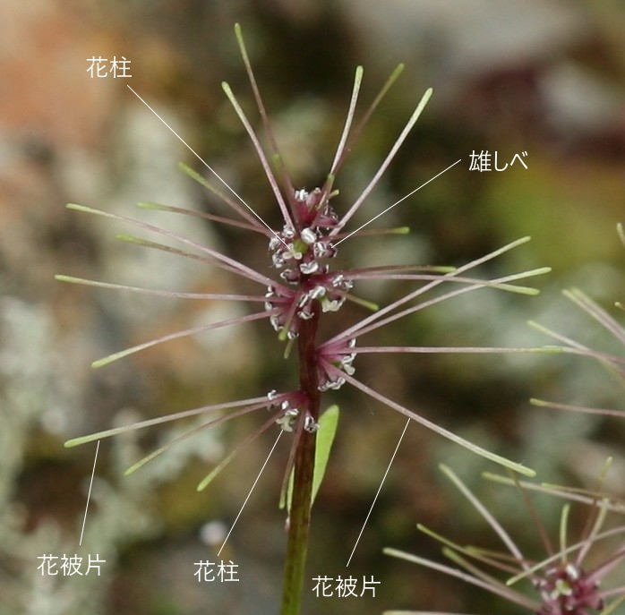 雑感:初めて見たチャボシライトソウの花序が紫褐色であったので、この色の印象が強く、高知県で緑白色の花序の個体に出会ったときに逆に違和感を感じた。