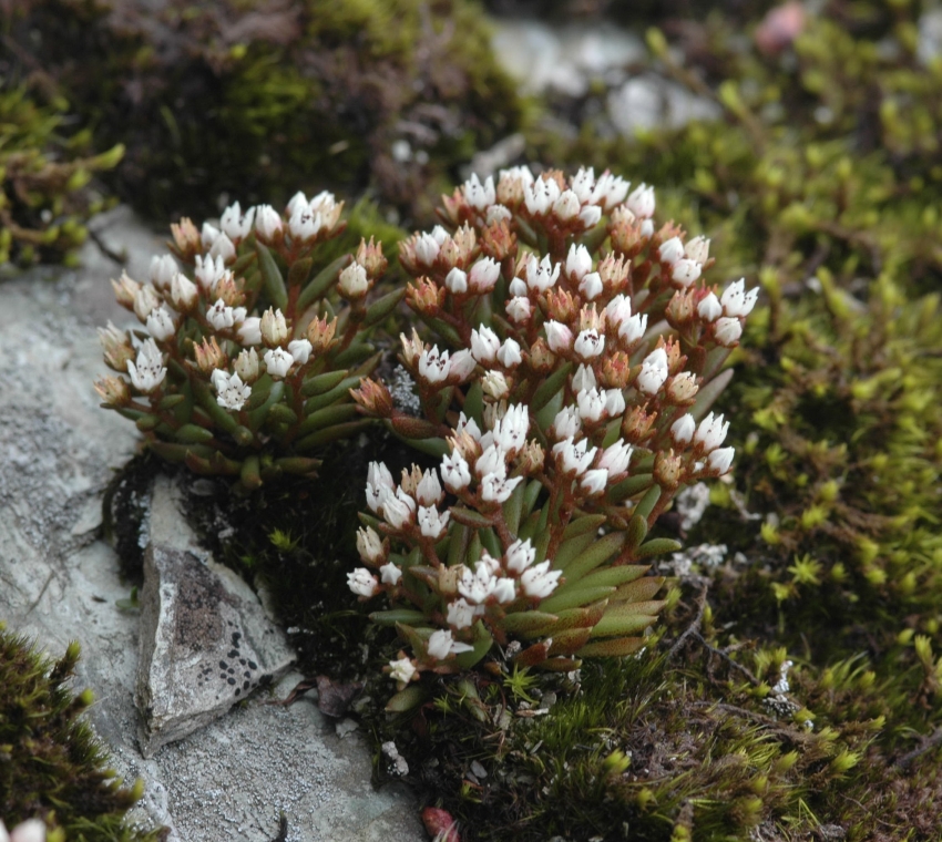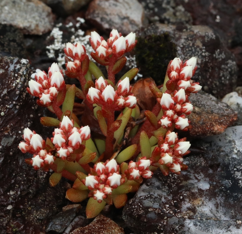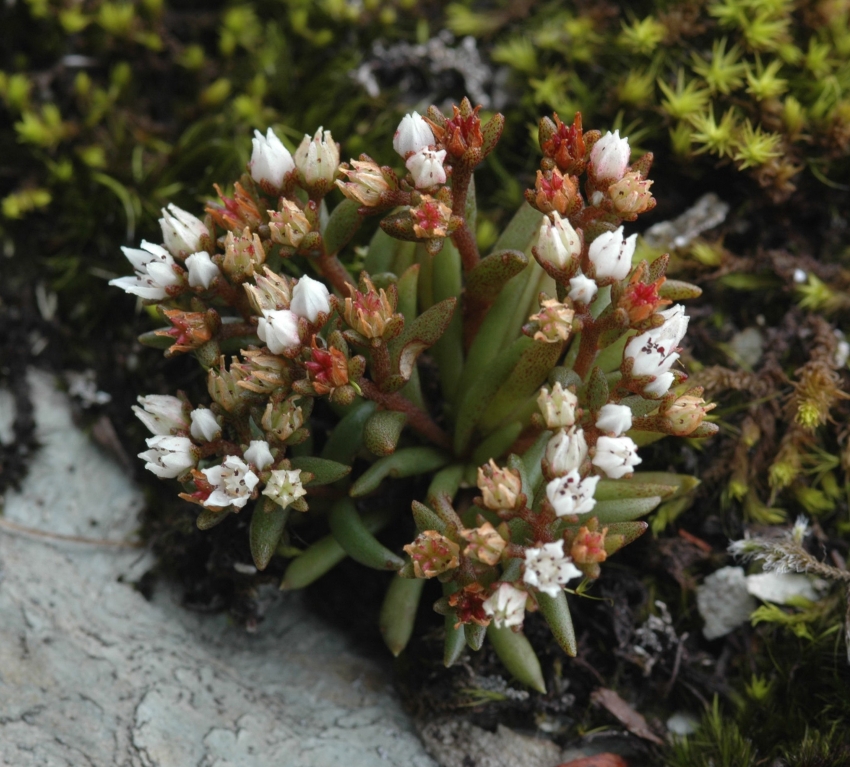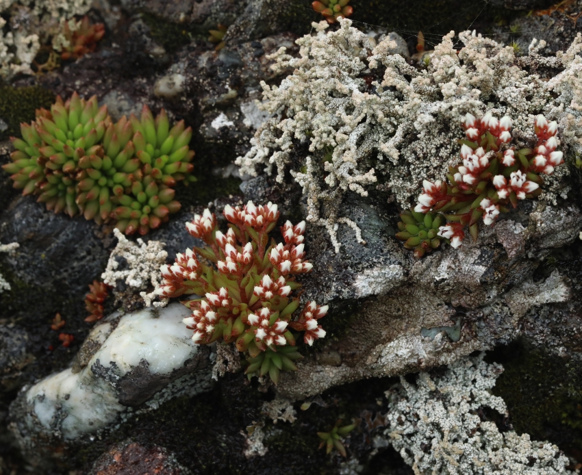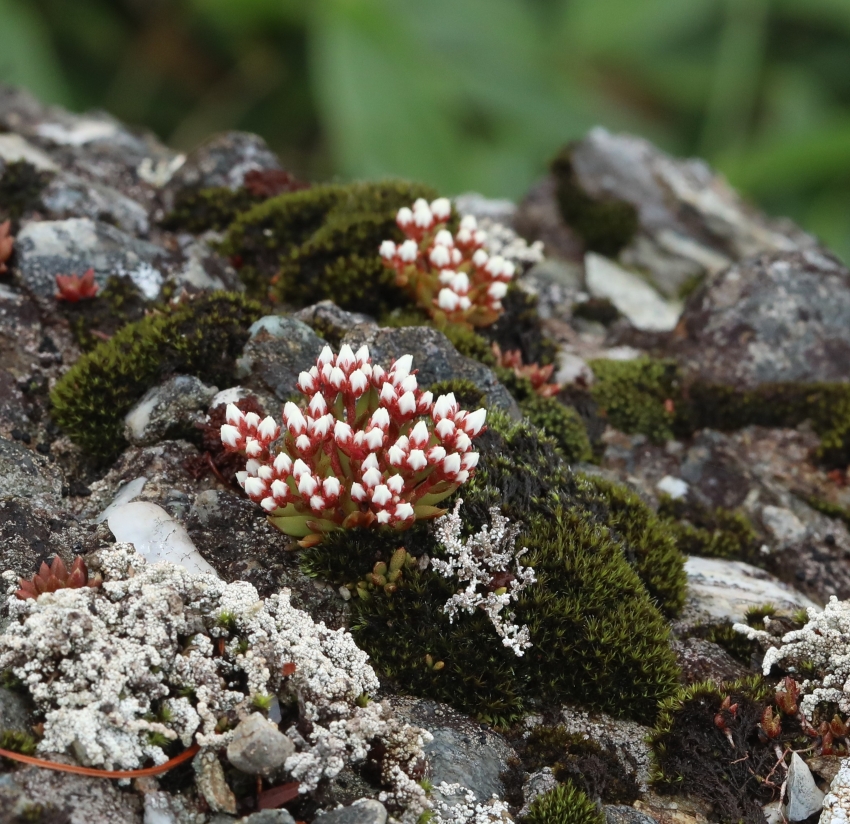 雑感:名前の親であるツメレンゲは本来の崖地から人里の屋根や石垣まで見かける機会も多いが、チャボツメレンゲは西日本の山地の自然度の高い岩上であり、なかなか出会えない。