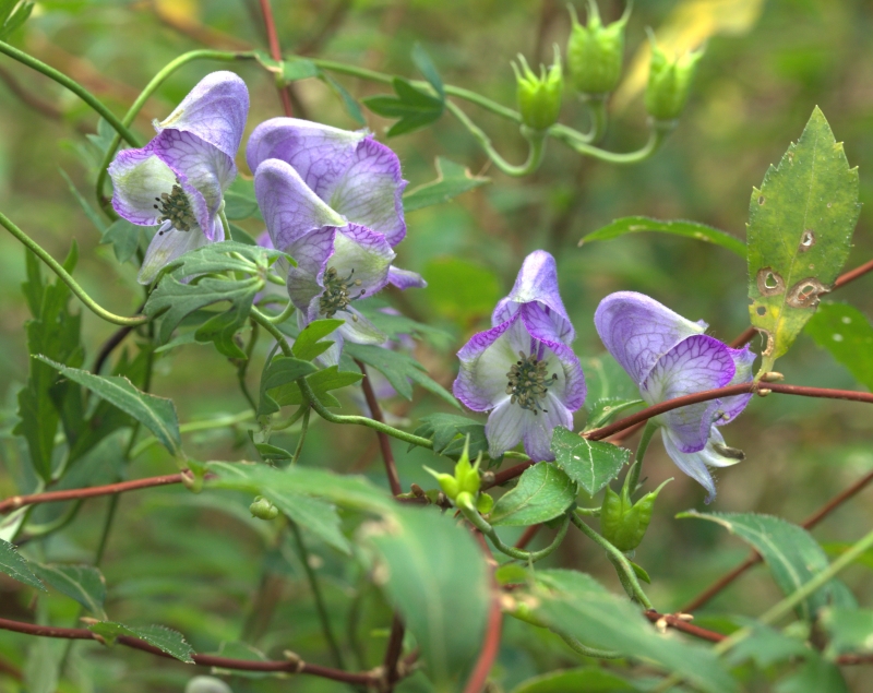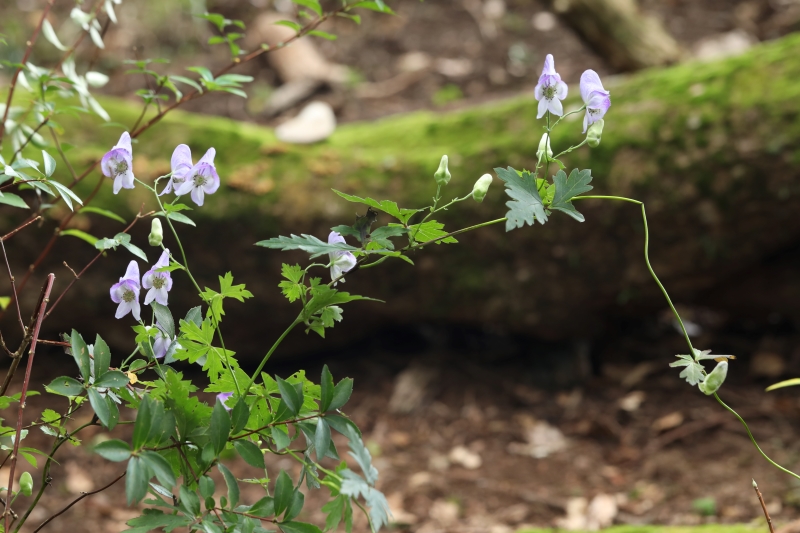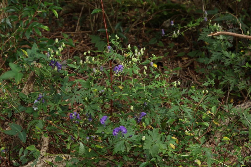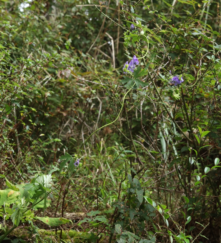 効率よく他の植物に絡み、日光を得るためであろうが、まだ進化の途中なのか、アサガオのようにはまだ巻き付けないようである。トリカブトの仲間は谷間などの少し湿った所に多いが、本種は風通しのよい少し乾燥気味の