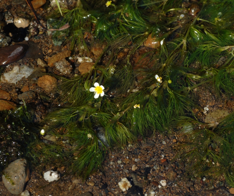 よく見ると水中の茎には蕾がついており、今後水位が減り流れが緩やかになれば花が咲くと思われる。