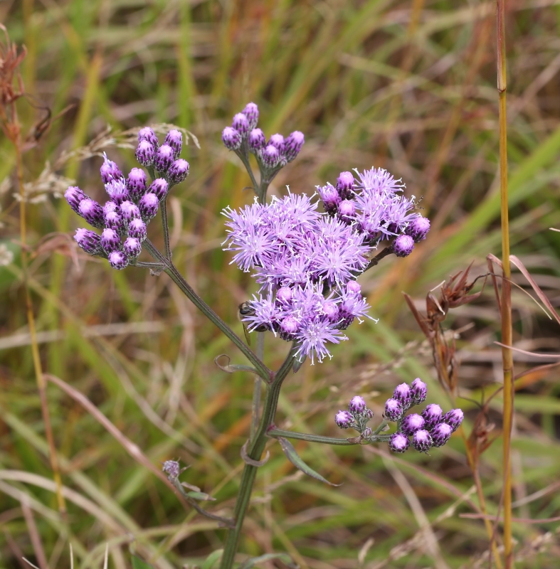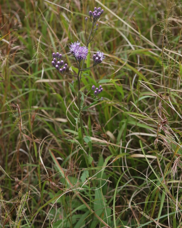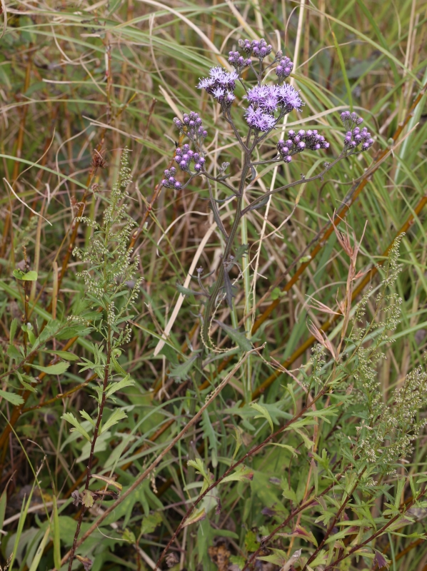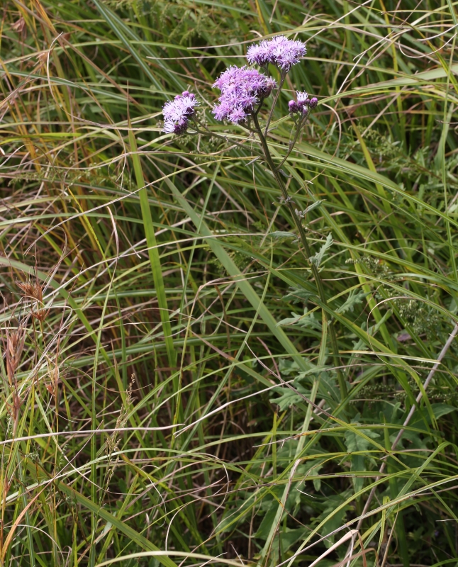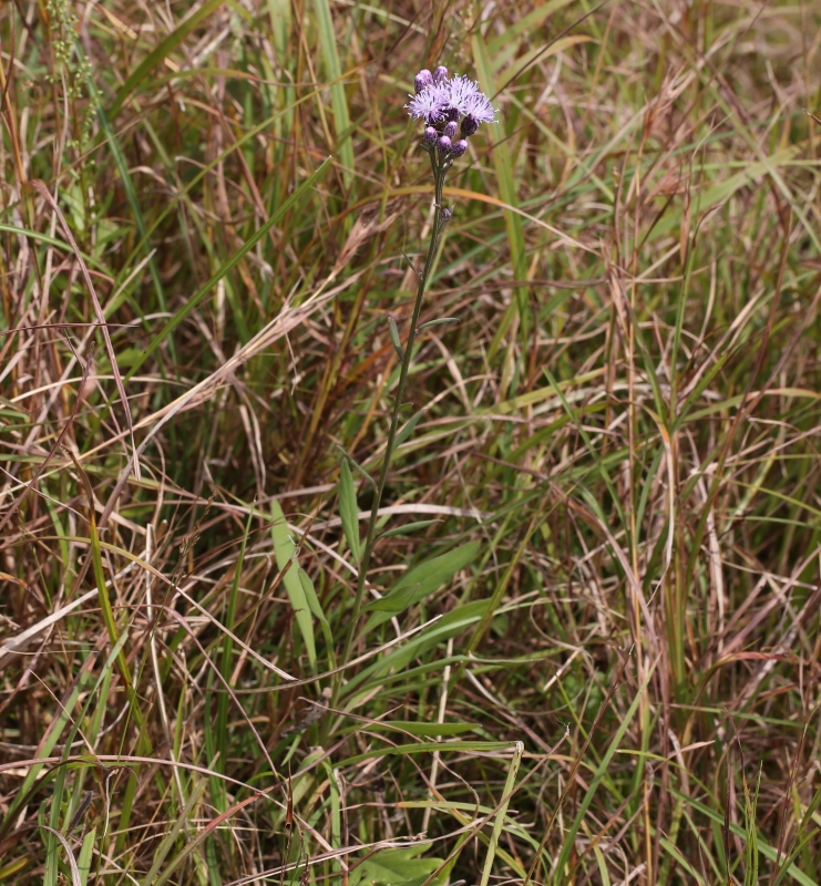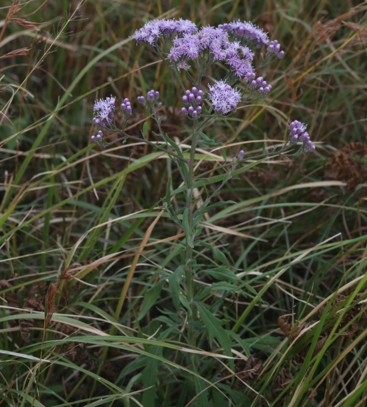 草丈約60cmほどの小さな個体。茎上部の切れ込みのない全縁の葉がよくわかる。一つの円錐状の頭花の集団に魅せられる。