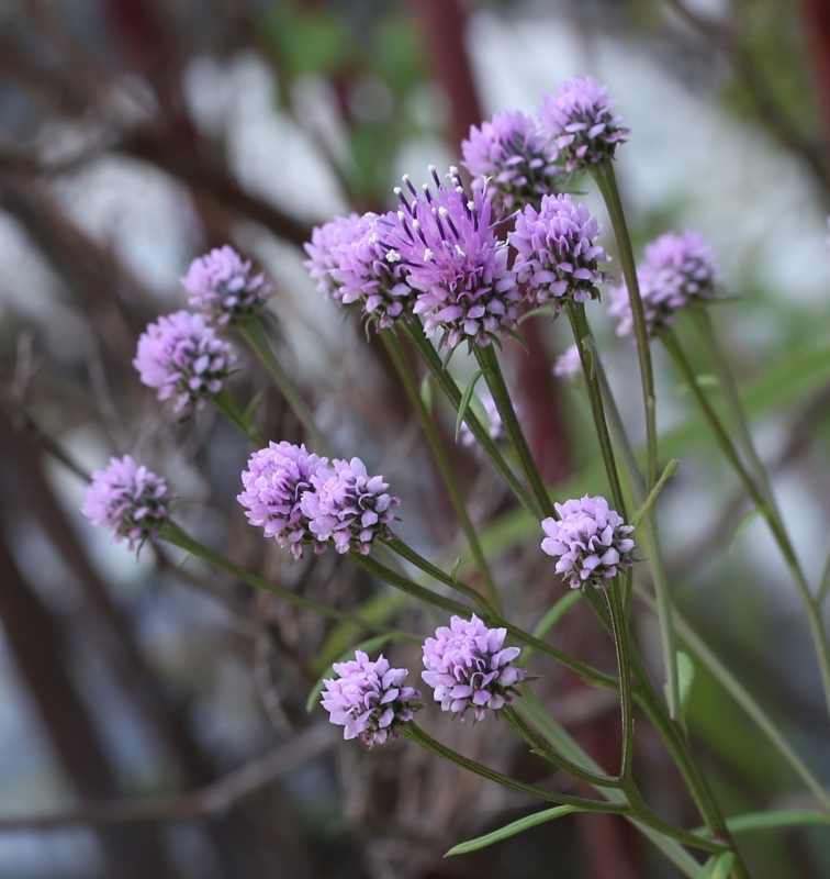 典型的なヒナヒゴタイの開花した株。散房状あるいは円錐状に密集している紅紫色の頭花と蕾が秋の終わりによく似合う。