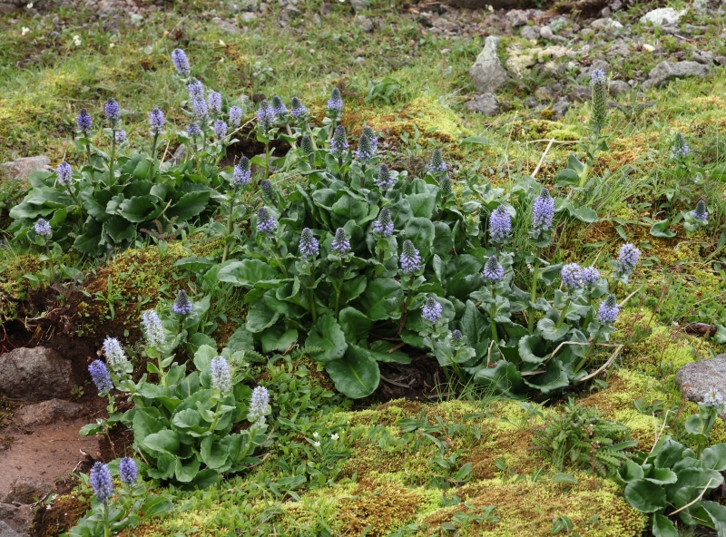 ホソバウルップソウはいつも満開を過ぎて咲き終わりにかけての個体ばかりであった。今回、残雪残る6月下旬に咲き始めの花を目的のひとつとして訪れたが