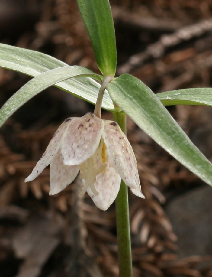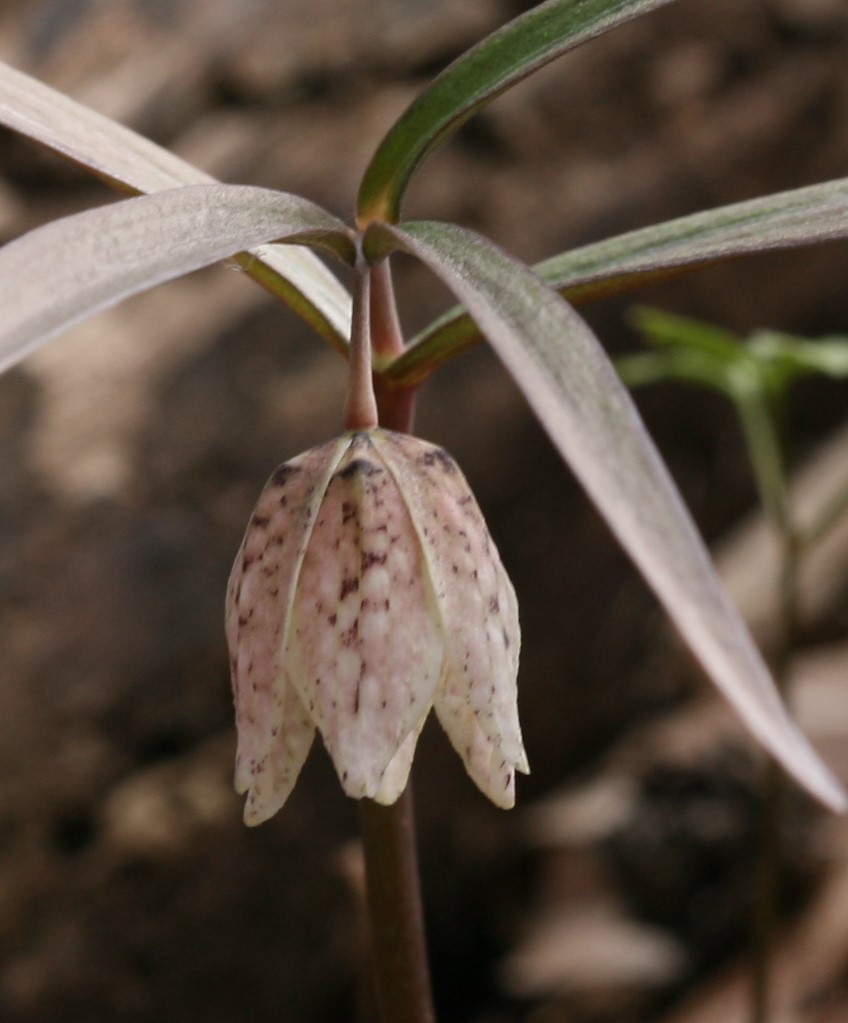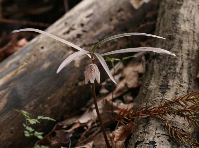雑感:日本に自生するコバイモの開花した個体を自生地で出会うと、可憐さはもちろんであるが、小さな草体で他の植物と健気に競争して生き残ろうとする姿は感心する。
