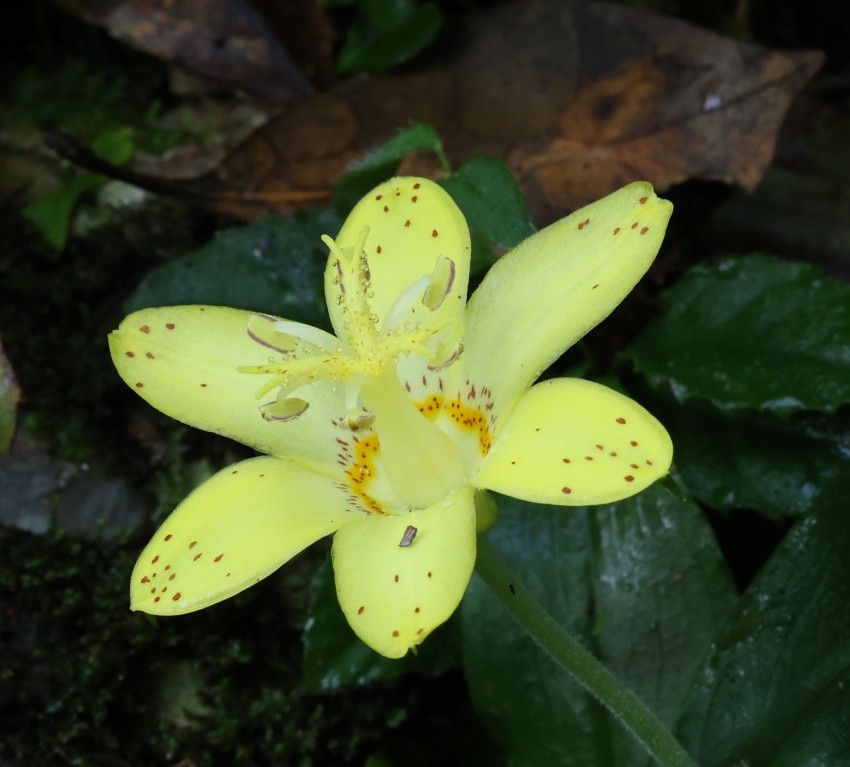 雑感:黄色の大きな花を咲かせ、濃緑の披針形の葉をもつチャボホトトギスはキバナノホトトギスとよく似ており、葉だけの時期には見分けつかないほどである。しかし、両者の分布域は重なることなく