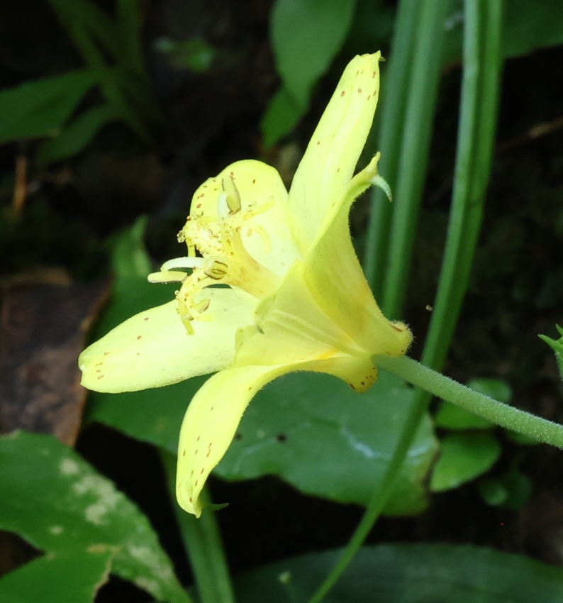 キバナノホトトギスの特徴の1つが長さ2~6cmもある長い花柄である。