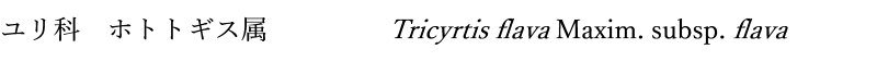 ・名前の由来:ホトトギス(杜鵑草)は花被片の斑点を鳥類のホトトギスの胸の斑点に見立てたことによる。そこでホトトギス(杜鵑草)の仲間で、花が黄色であることからキバナノホトトギス(黄花の杜鵑草)となった。