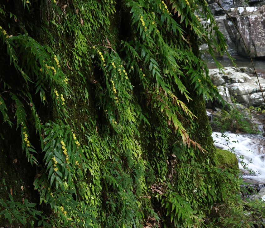 ・生育地:湿気のある渓流沿いの崖地の岩壁から下垂して生育する。
