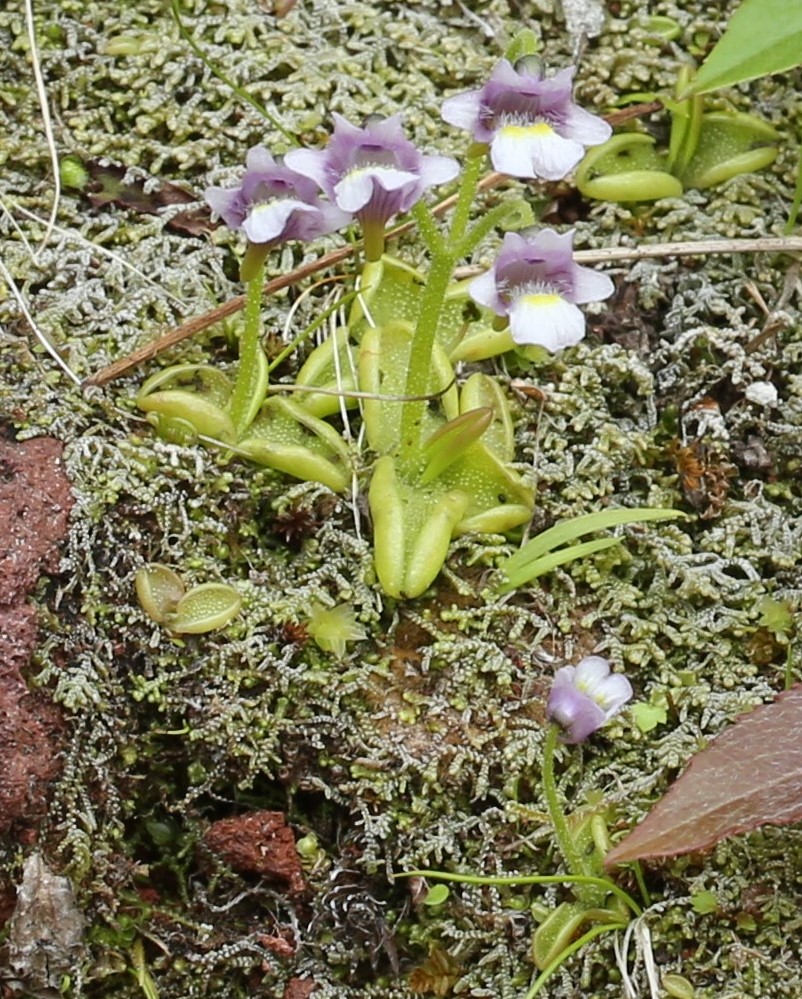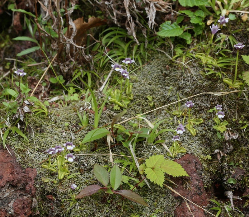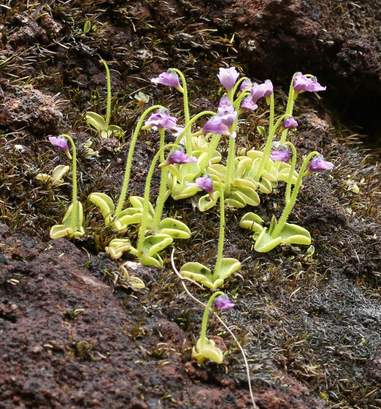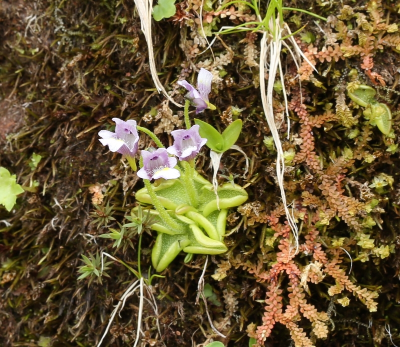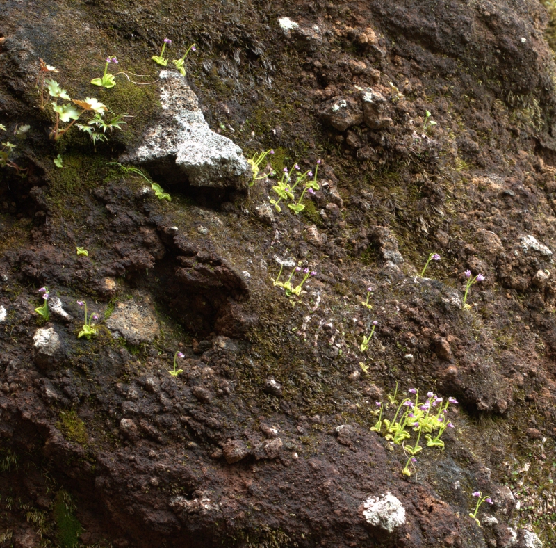 出会いたいと願っていた。現地は確かに霧が多そうな冷涼な岩崖であり、岩肌で栄養価がなく、光合成だけでは小さな草体を維持できずに昆虫食に進化し、さらに繁殖においても花茎を上方に曲げて種子を岩肌につける工夫など