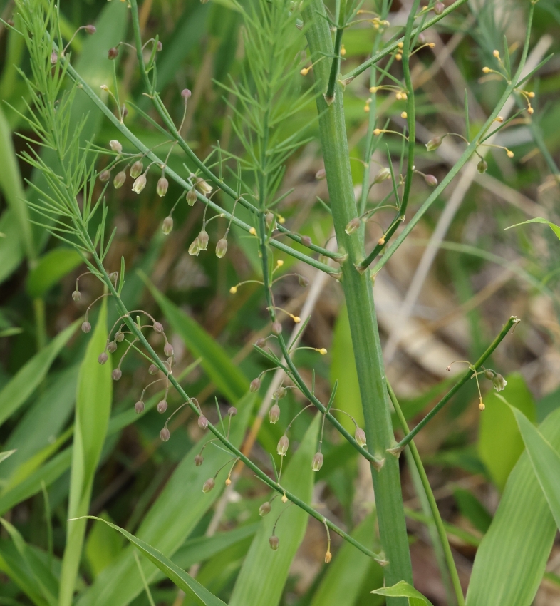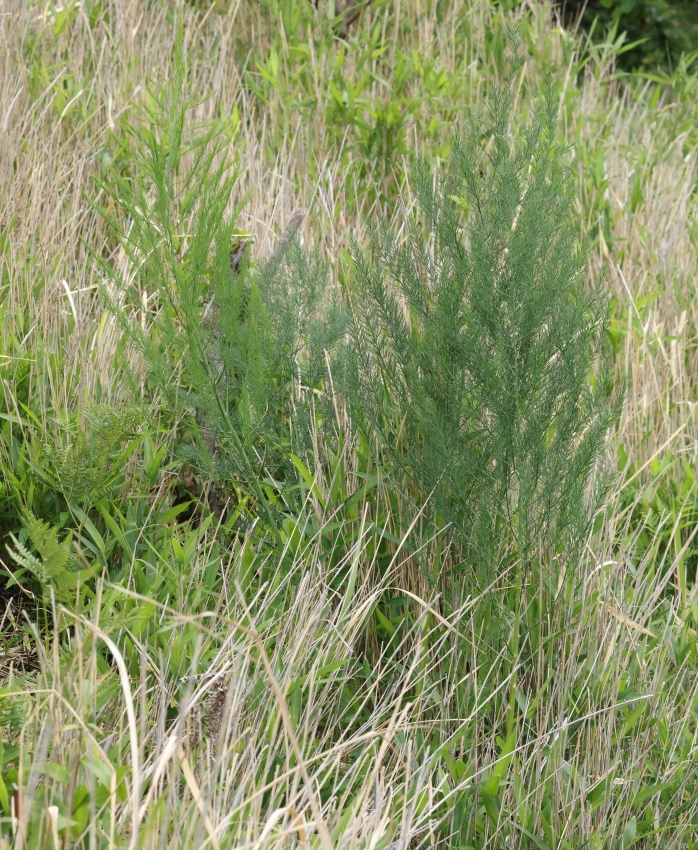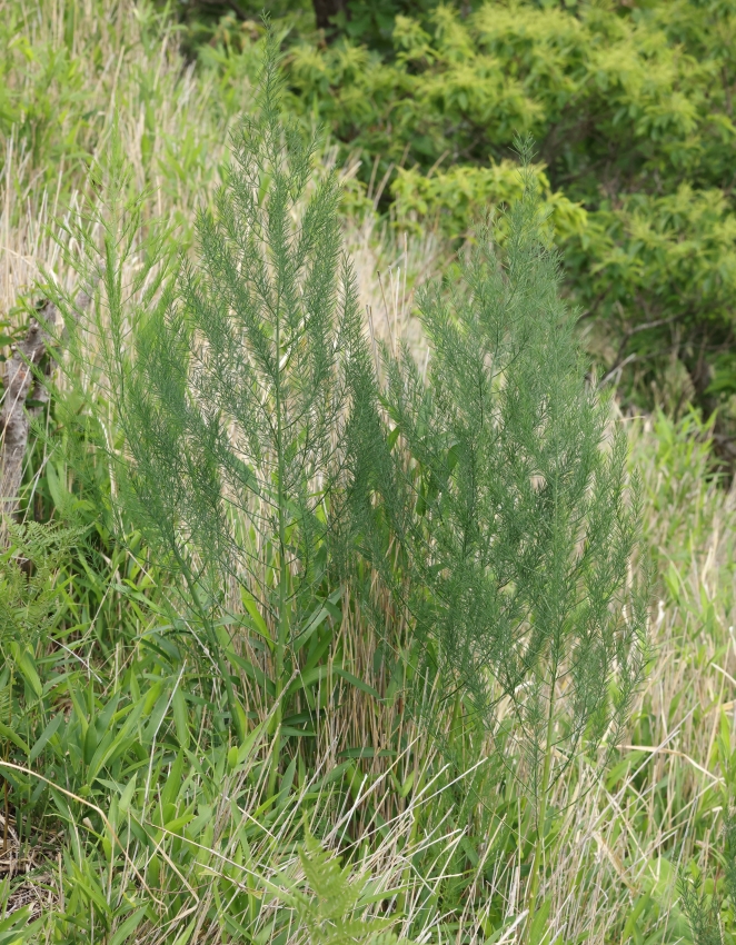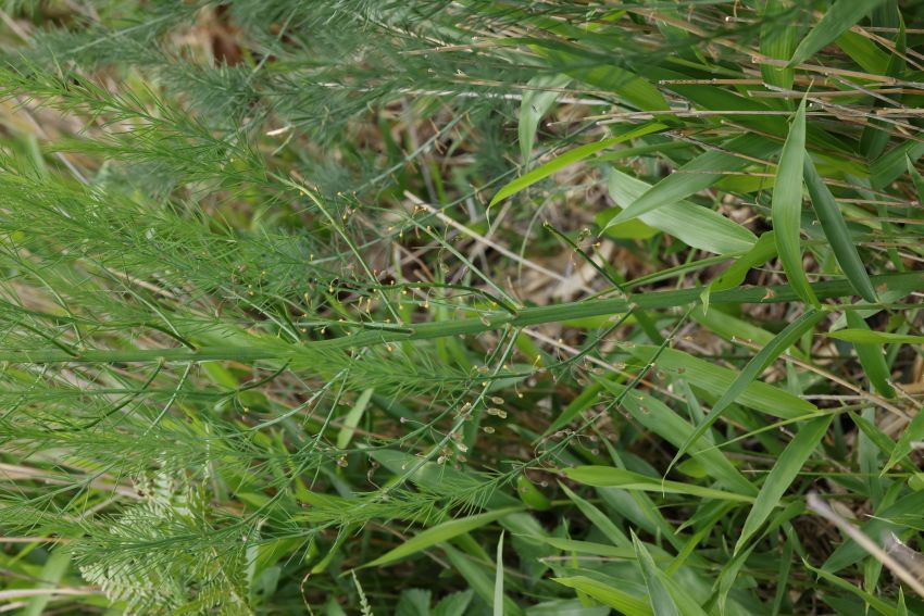 雑感:食用に古くから栽培されているオランダキジカクシ(通称:アスパラガス)とタマボウキは本当によく似ていることに驚かされた。久住山の自生地で見るタマボウキは強い繁殖力をもつササに追いやられながらも