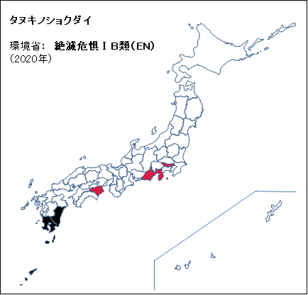 ・分布 :本州(東京都伊豆諸島、静岡)、四国(徳島)、九州(宮崎、鹿児島)