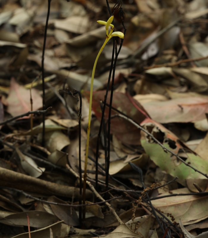 ・特徴 :常緑広葉樹林の林床に生育するチチタケ属やベニタケ属の菌類から養分を得ている菌従属栄養植物。草丈は最大20cmほどで花柄子房も短くムヨウラン属の他種に比べて全体に小形である。